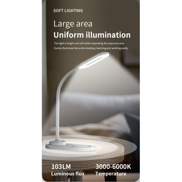 1.Dual use: wireless charging+three color eye protection desk lamp, say goodbye to messy cables